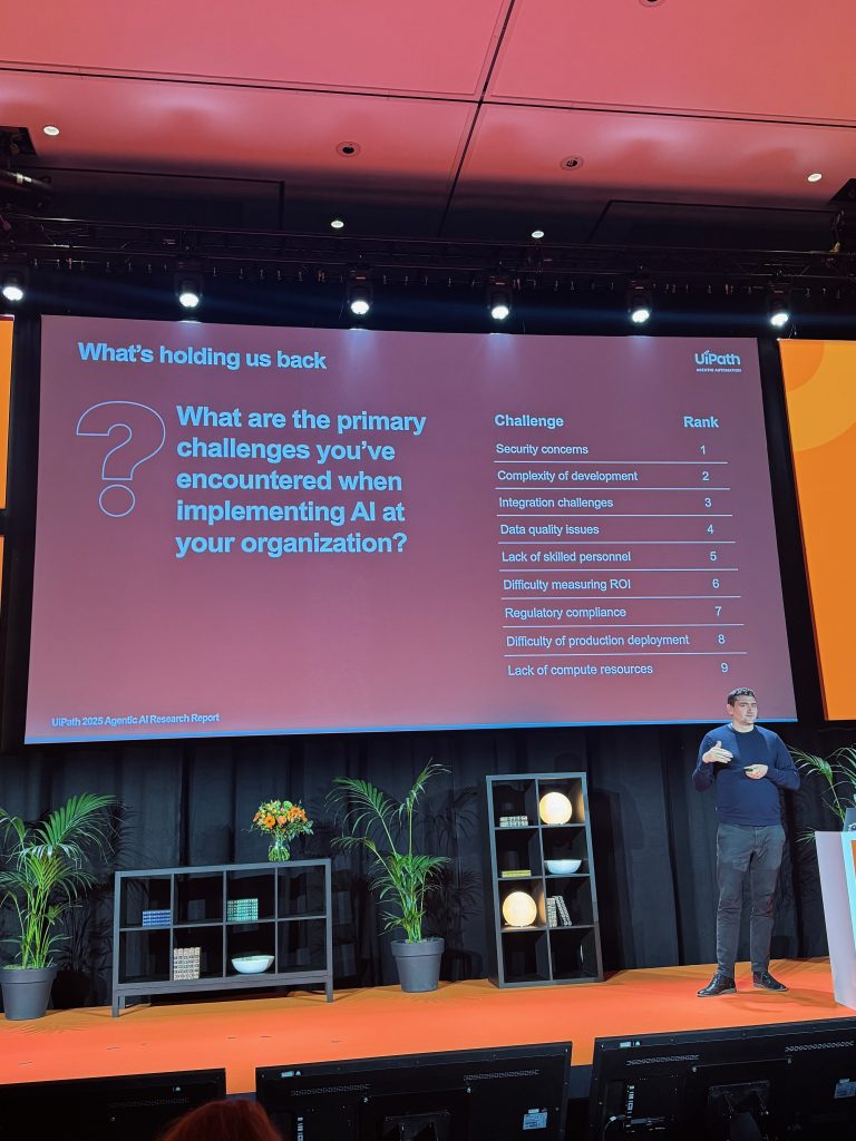 They closed with a clear message: agents alone are not the solution. Only when agents are orchestrated with people, robots, and processes can they deliver real enterprise outcomes. UiPath’s role, they emphasized, is not to build standalone agents – but to build the layer that connects everything together with trust, governance, and measurable impact.